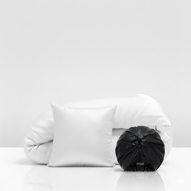 zijden dekbedovertrek & kussensloop wit - zijden bonnet zwart / Standaard (50 x 60 cm) / Single (140 x 200 cm)