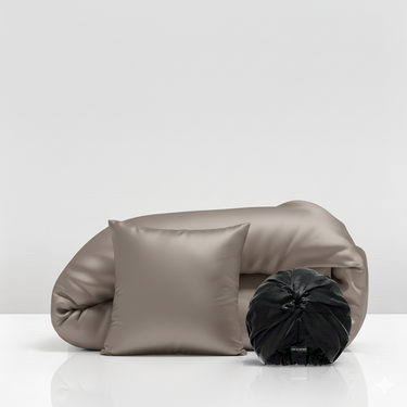zijden dekbedovertrek & kussensloop grijs & zijden bonnet beige / Queen (50 x 75 cm) / Twin (180 x 220 cm)