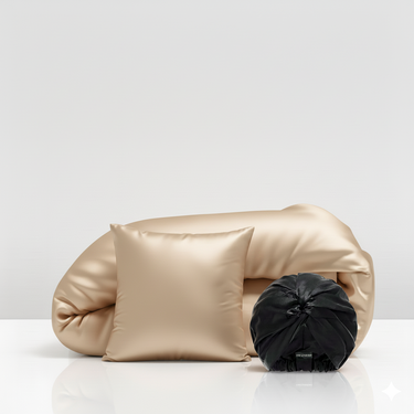 zijden dekbedovertrek & kussensloop champagne - zijden bonnet zwart / Queen (50 x 75 cm) / Single (140 x 200 cm)