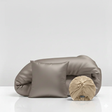 zijden dekbedovertrek & kussensloop grijs & zijden bonnet beige / Lumbar (40 x 80 cm) / Full (200 x 220 cm)